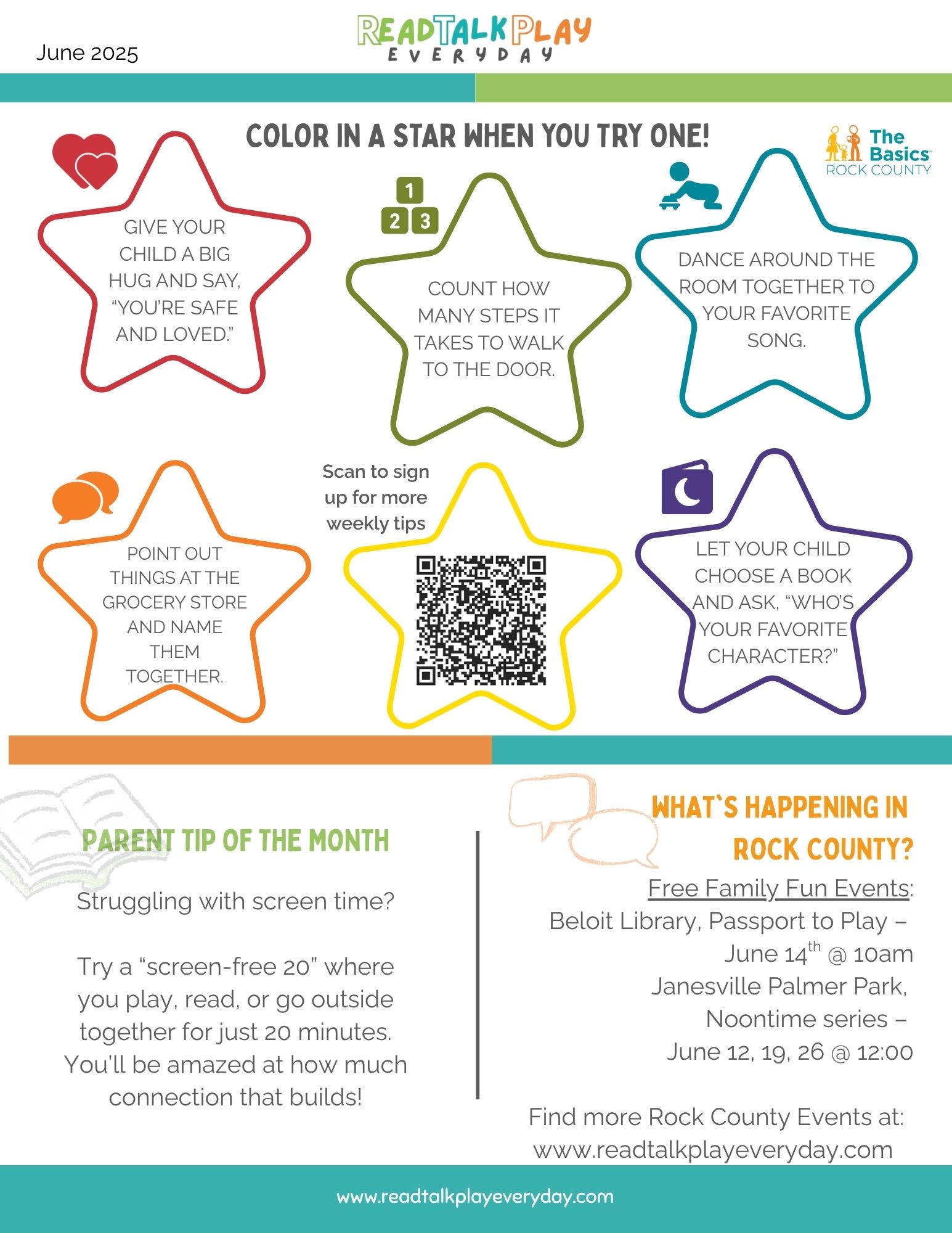 We’re thrilled to launch the very first issue of the Read Talk Play Every Day newsletter, a simple, printable tool created just for families in Rock County with children under the age of 5.